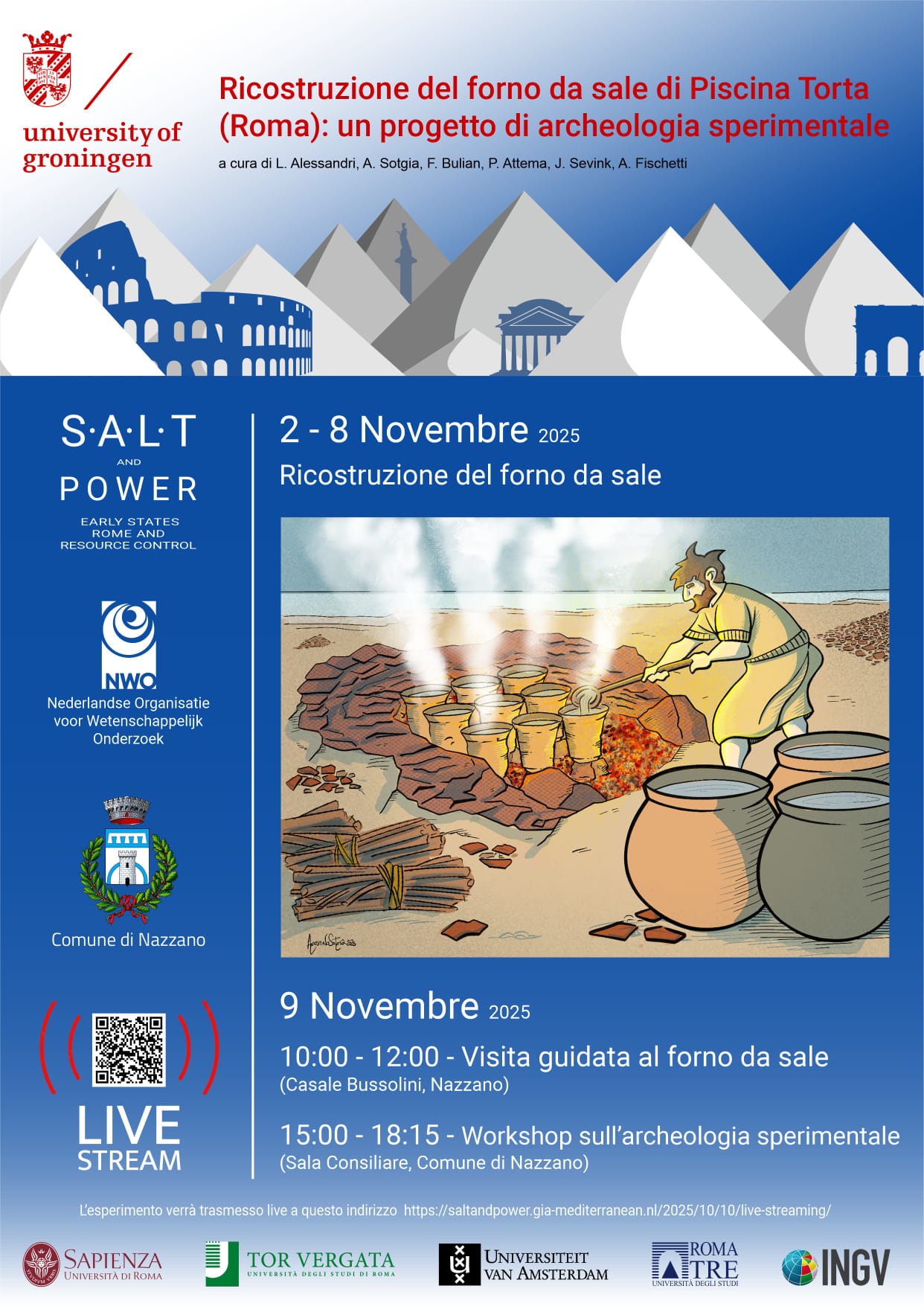 Dal 2 al 9 novembre 2025 Nazzano ospita il progetto internazionale Salt & Power dell’Università di Groningen, dedicato alla ricostruzione di un forno da sale dell’età del Ferro e alle pratiche di archeologia sperimentale.